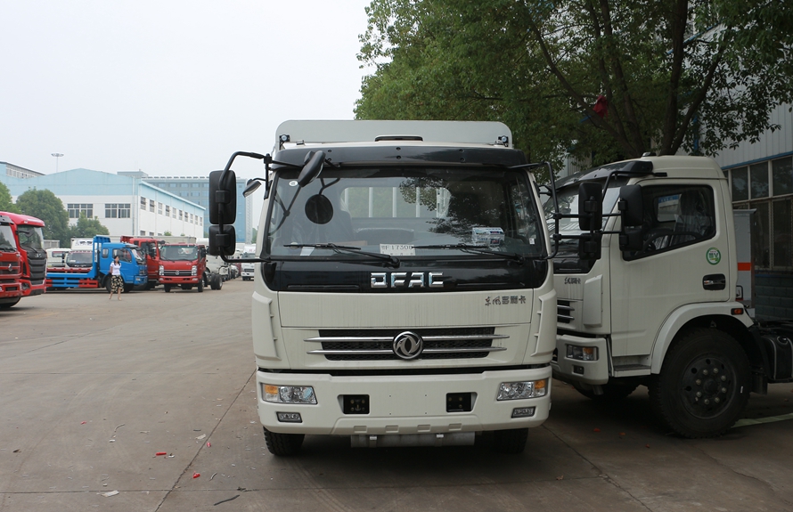 底盘采用东风多利卡,朝柴150马力或玉柴130马力,6档变速箱,7.50钢丝胎,空调方向助力,前盘制动,排气管前置。