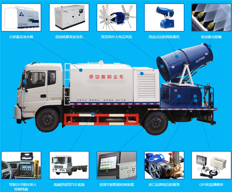 2.工作效率高、喷雾速度快;对容易引起尘埃的堆场喷水除尘时,喷出的雾粒细小、与飘起的尘埃接触时,形成一种潮湿雾状体,能快速将尘埃抑制降沉,雾量沉降率可达95%。